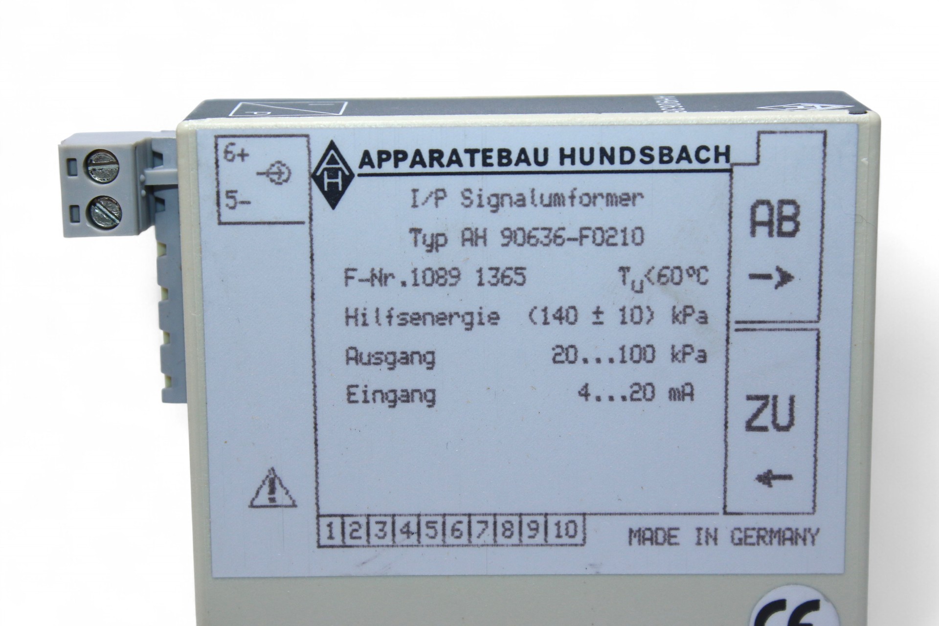 Manufacturer: APPARATEBAU HUNDSBACHType: I/P Signal ConverterModel: AH 90636-F0210