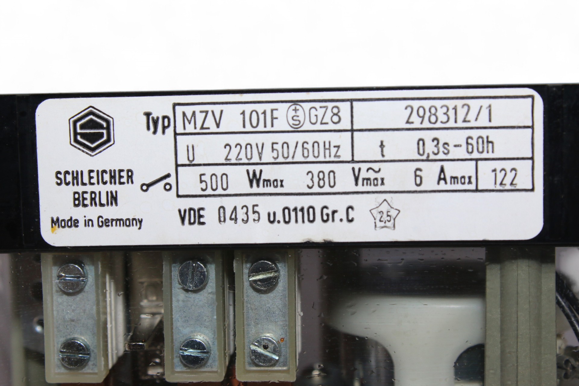 Manufacturer: SCHLEICHERType: TIME RELAYModel: MZV 101FPart No: 298312/1
