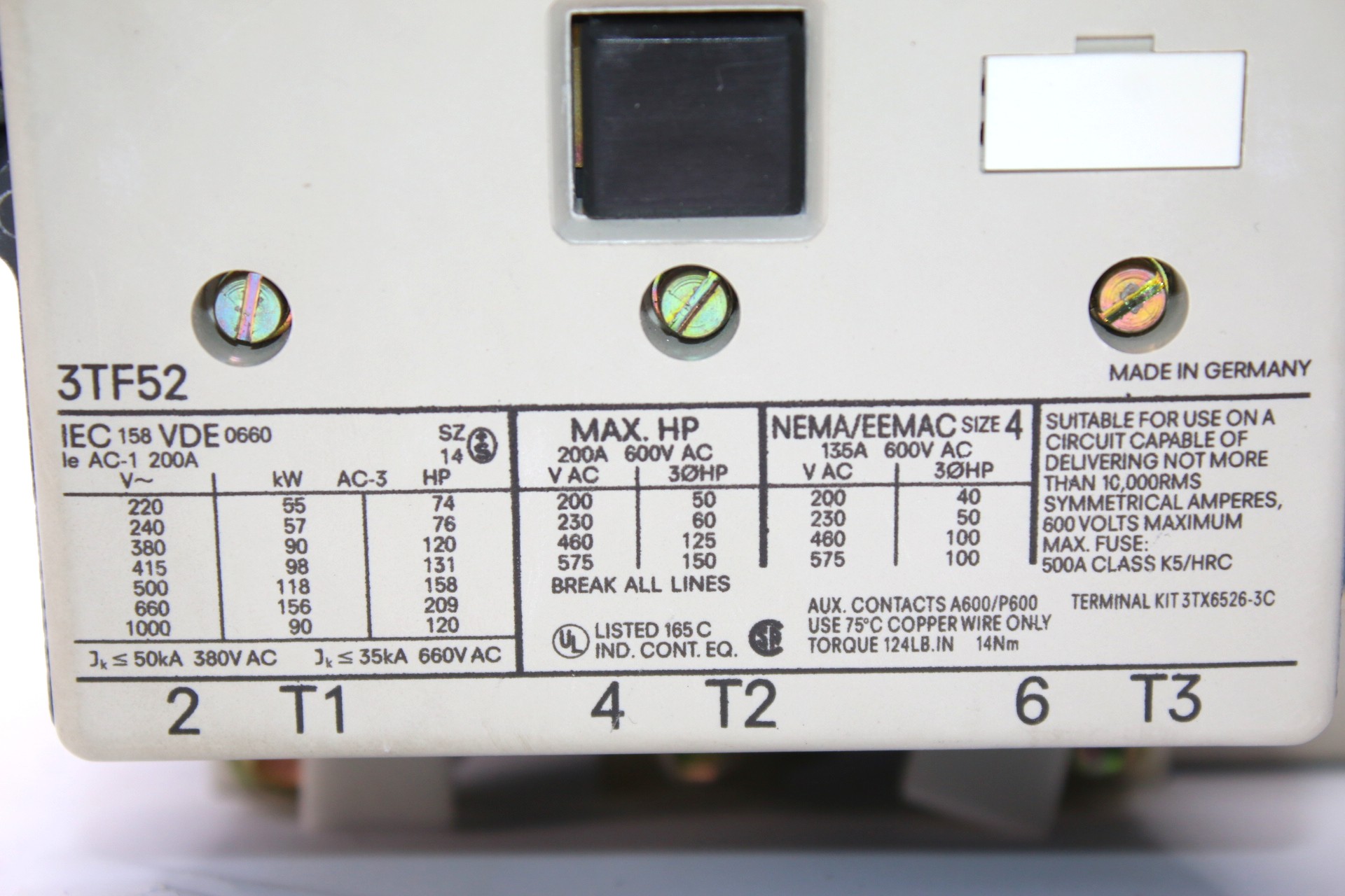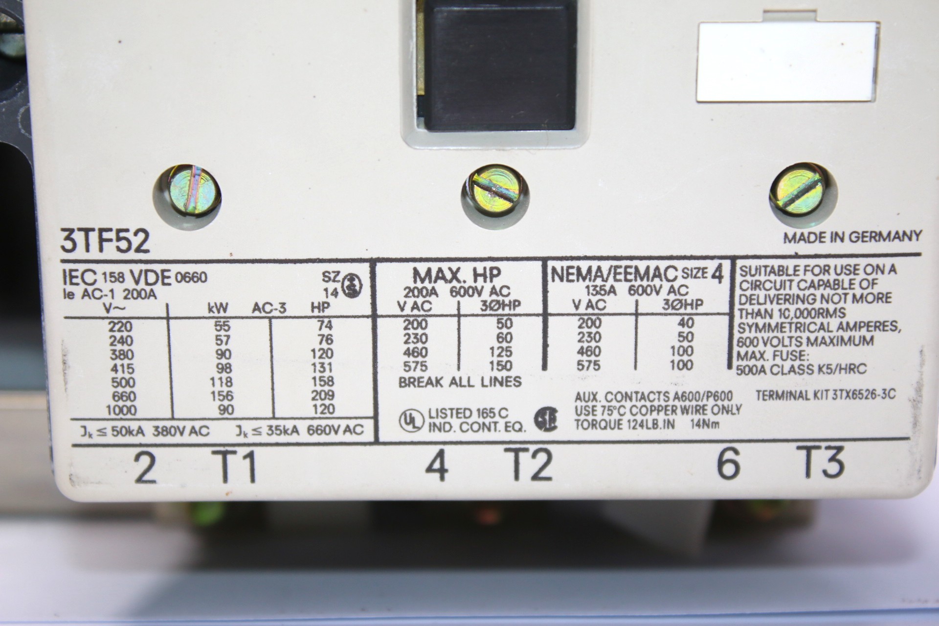 AC-3 Rating: 90 kW / 400 V AC