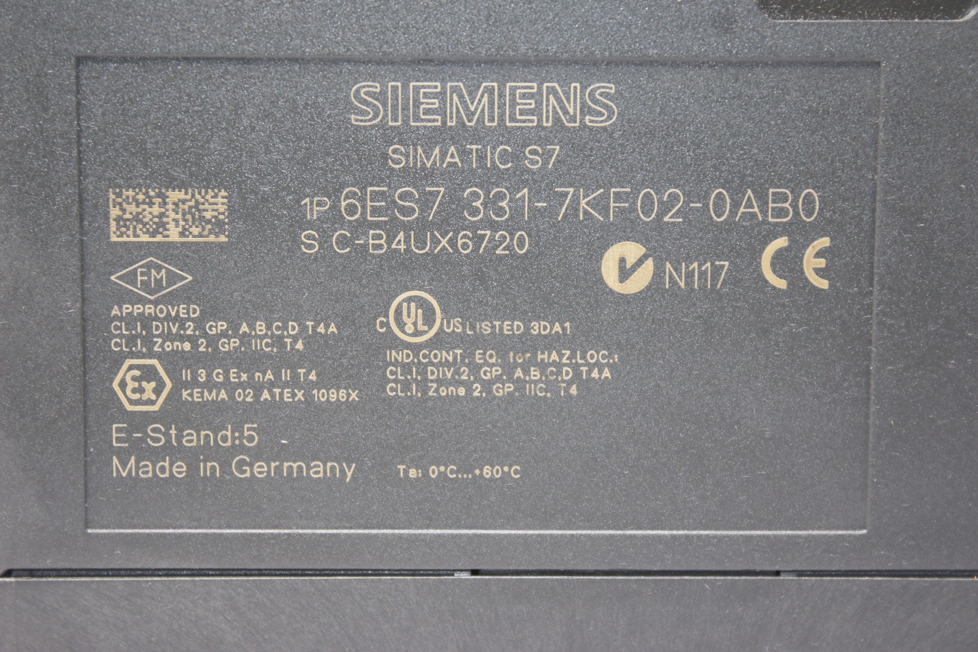 Manufacturer: SIEMENS Type: ANALOG INPUT MODULE Model: 6ES7 331-7KF02-0AB0