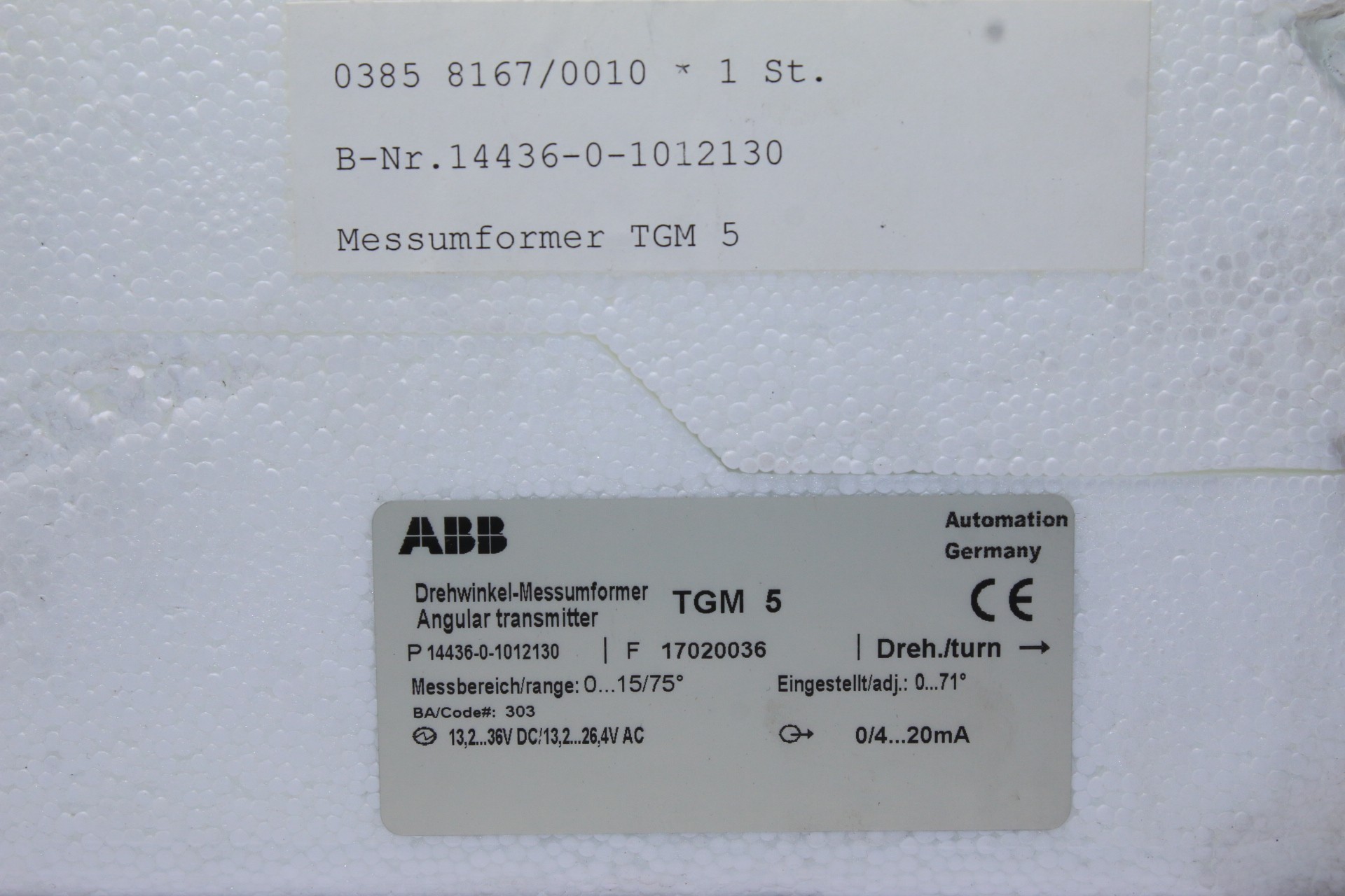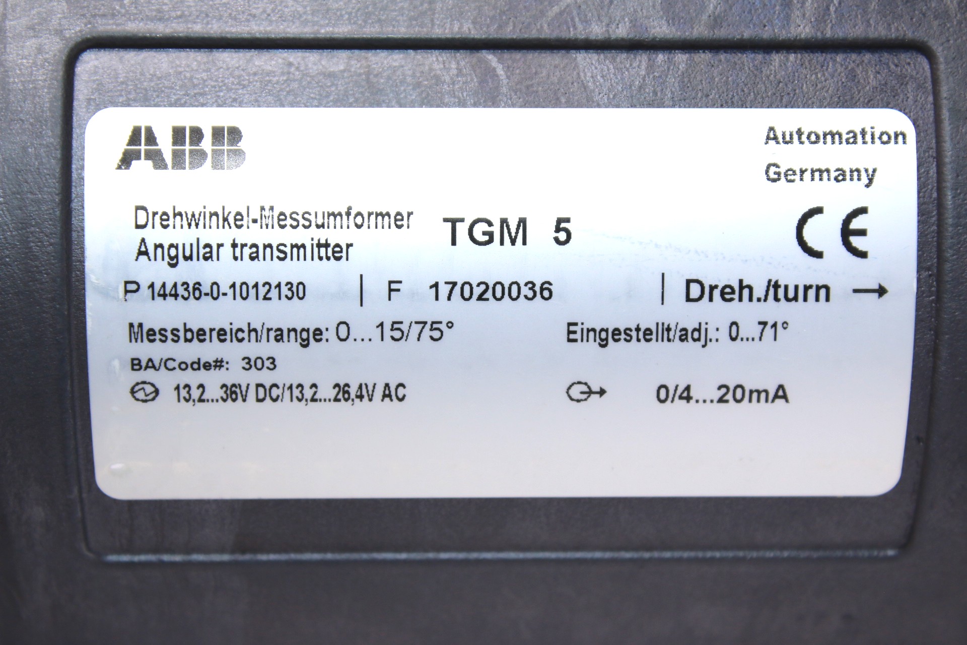 ABB TGM 5 ANGULAR TRANSMITTER P 14436-0-1012130