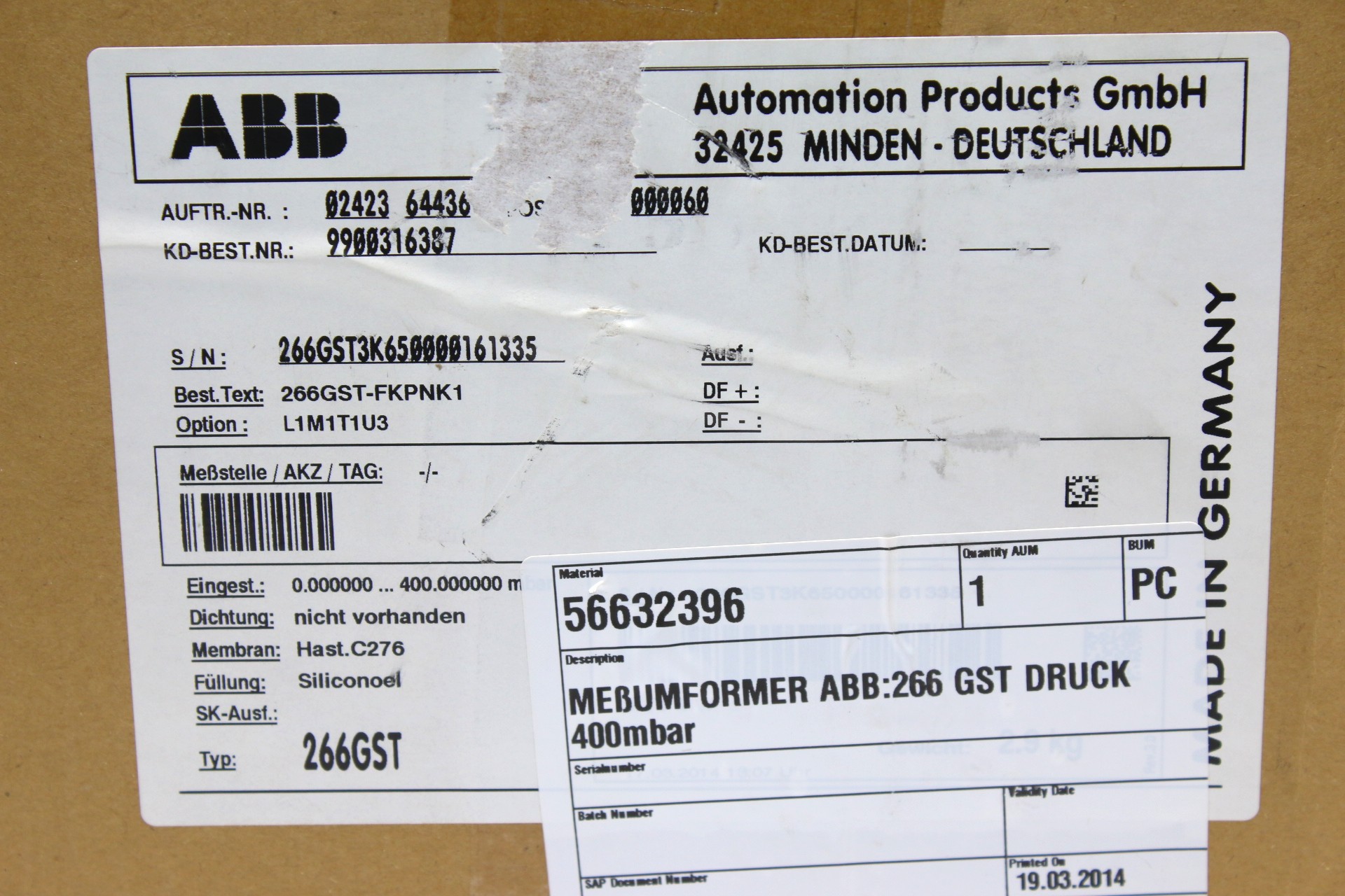 Type: PRESSURE TRANSMITTER