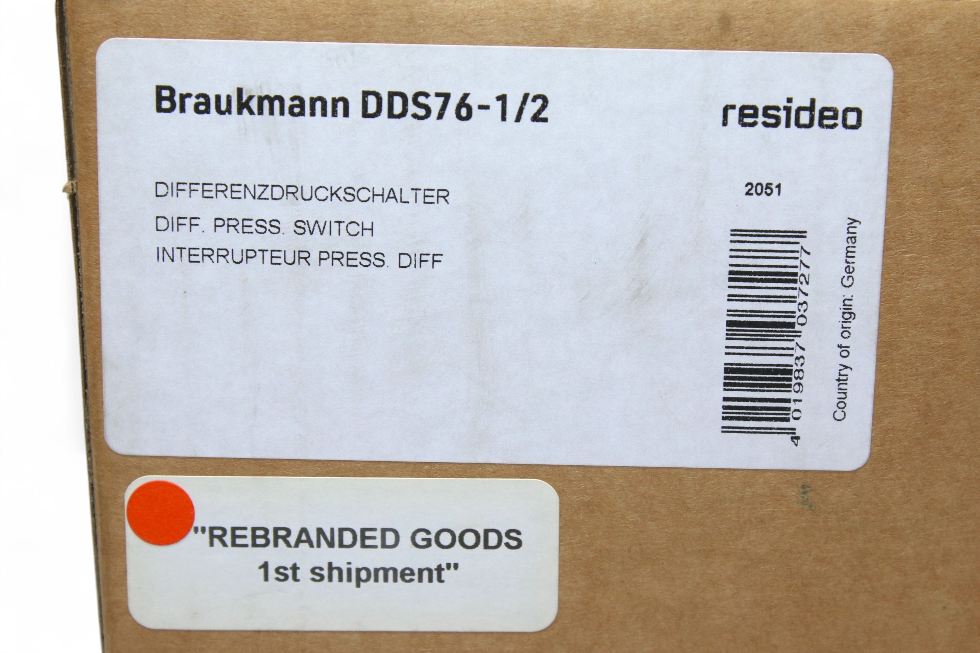 RESIDEO BRAUKMANN DDS76-1/2 DIFFERENTIAL PRESSURE SWITCH (0….1.6 bar)
